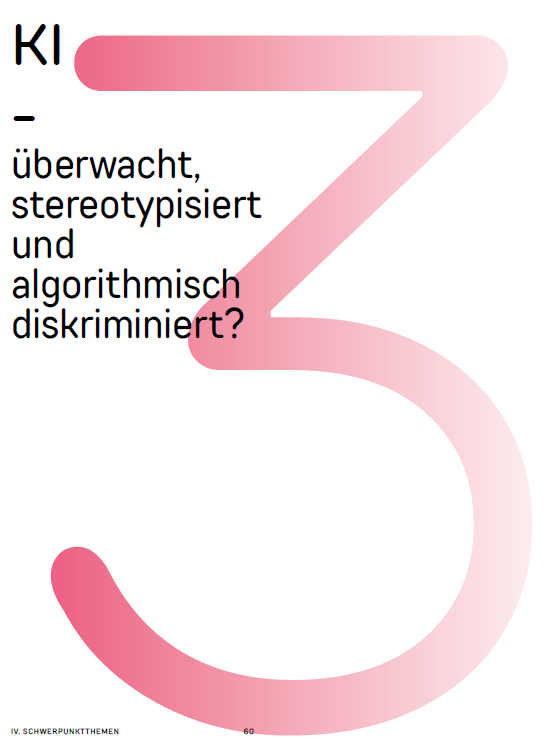 [23] Siehe S. 74 des Beitrages von Ilona Horwath, Algorithmen, KI und soziale Diskriminierung. Seiten 71–101. In: K. Schnegg, J. Tschuggnall, C. Voithofer, M. Auer (Eds.), Inter- und multidisziplinäre Perspektiven der Geschlechterforschung, University Press, Innsbruck, 2022
