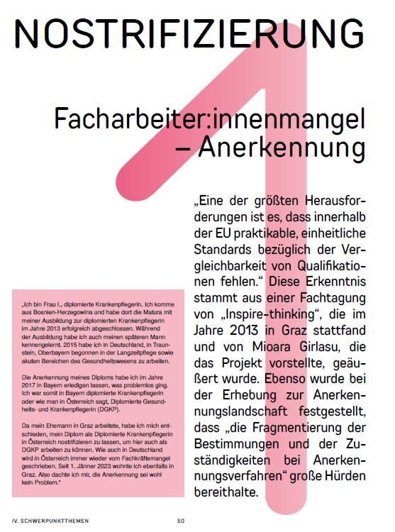 [1] Siehe auch Inspire-thinking: Anerkennung von im Ausland erworbenen Berufsqualifikationen. Tagungsdokumentation, Graz, 2013.