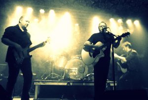 Als gegen 22 Uhr g.u.l.i.s. auf die Grazer Club Wakuum Bühne kamen, war das Haus gut gefüllt und von feel&felix (git, harm. voc., und drums) wohltemperiert mit großartigen Songs eingestimmt. Das aus einem Duo (e-git, ac-git) neuformierte g.u.l.i.s. Quartett, vervollständigt mit einem treibenden aber auch musikalischen Drummer Thomas Antonic (früher Heumond, night on earth) sowie William S. Burroughs Hurts und Sorry und einem soliden und pointierten Bass Mann Thomas Ringhofer, legten gleich ordentlich los. Zwei schon ältere Nummern (no signal und frog in the box) gab es zum aufwärmen. Danach folgte ein Block von Songs von der neuen „Borderlines“ EP: An den Grenzen, Venice und So this in the end is…